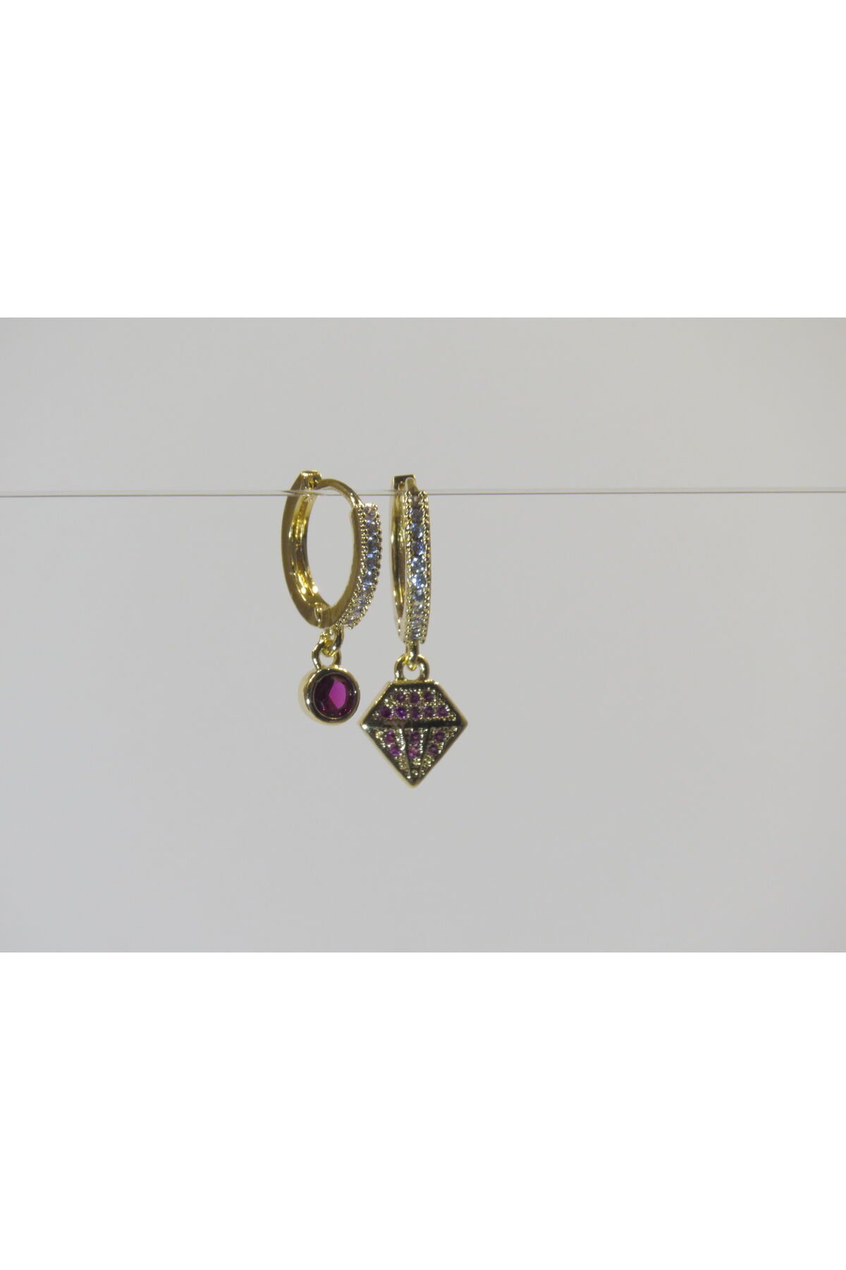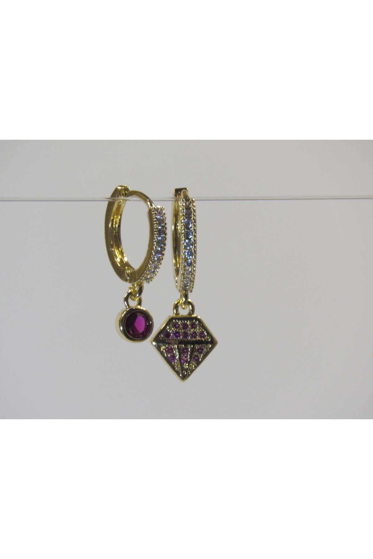 Purple Diamond Figürlü Gold Küpe