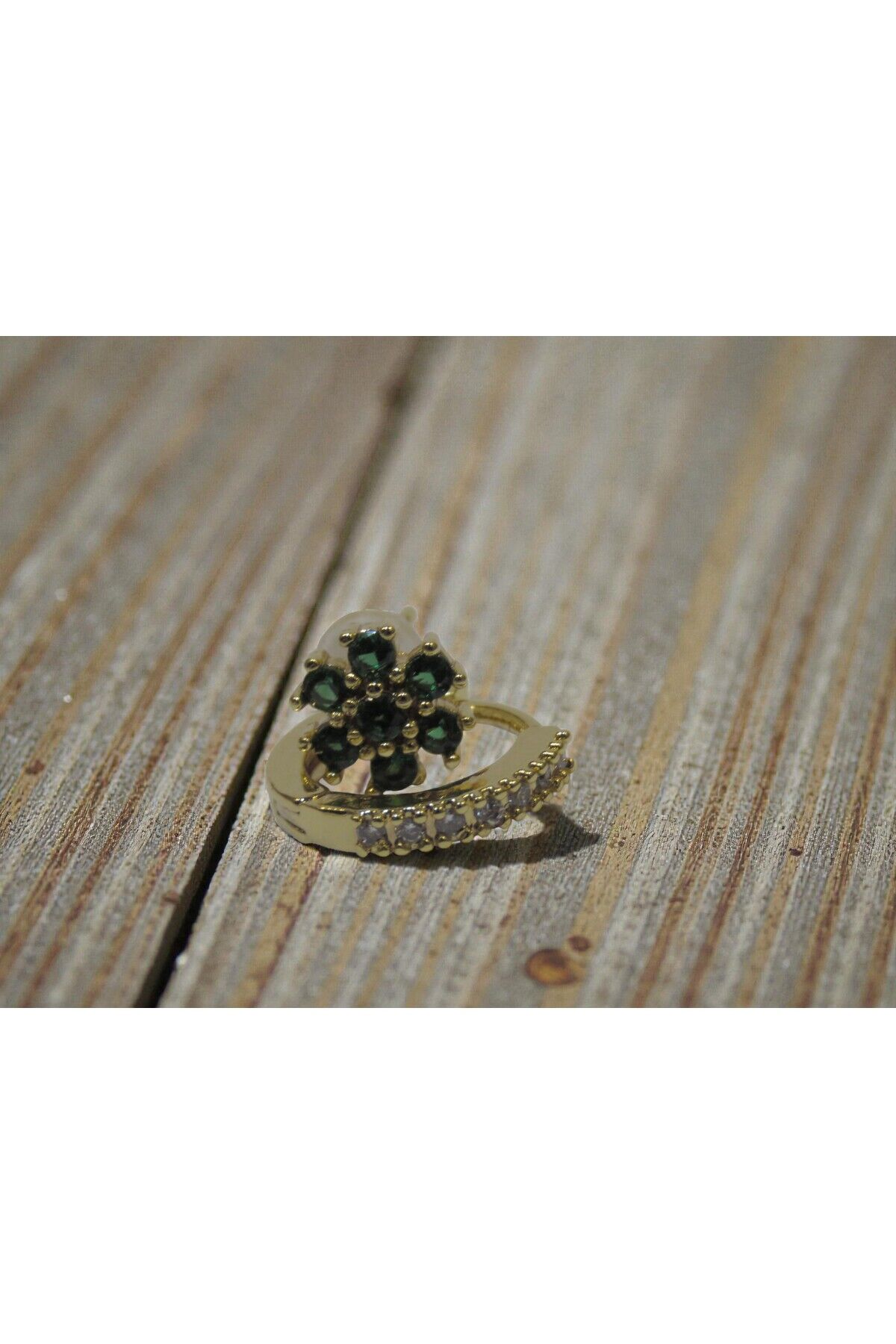 Yeşil Zikron Taşlı Zarif Çelik Küpe